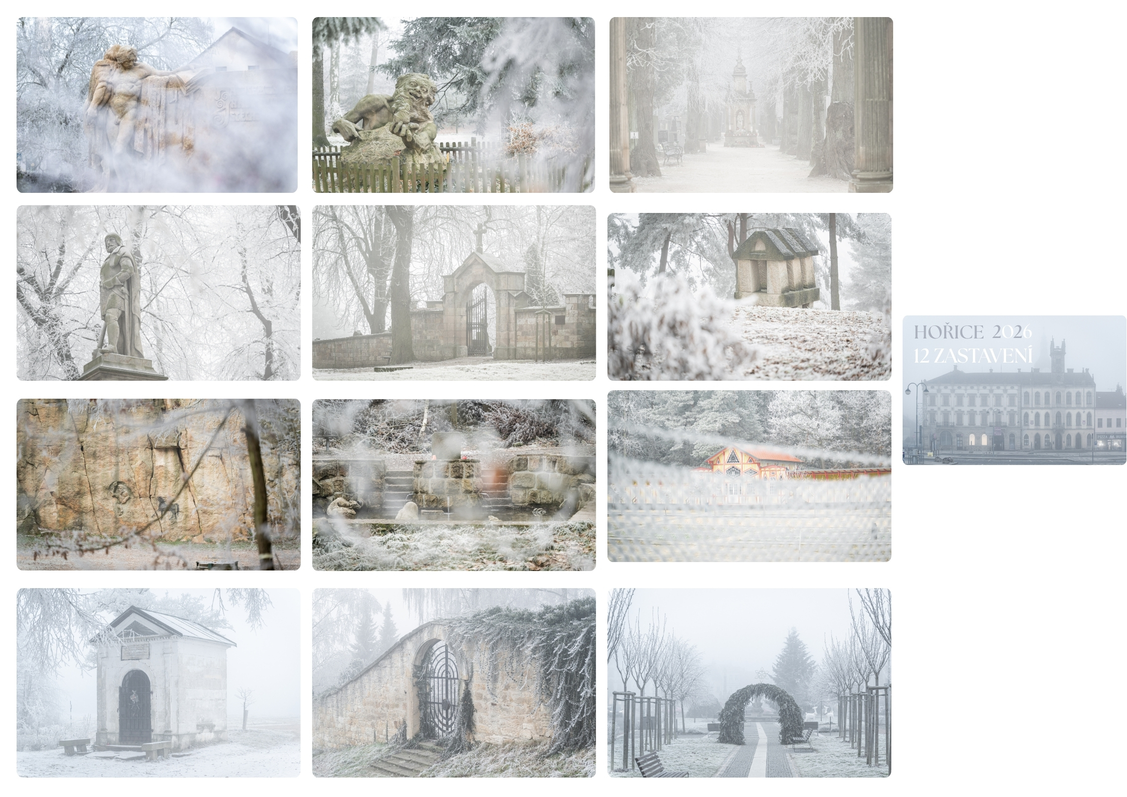Z té cesty vzniklo dvanáct zastavení – dvanáct obrazů Hořic v zimě.